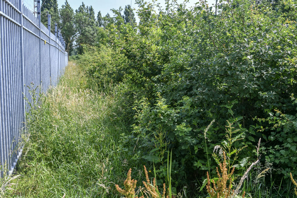 64 Zone H: breed, gemengd plantsoen langs hek van bedrijventerrein