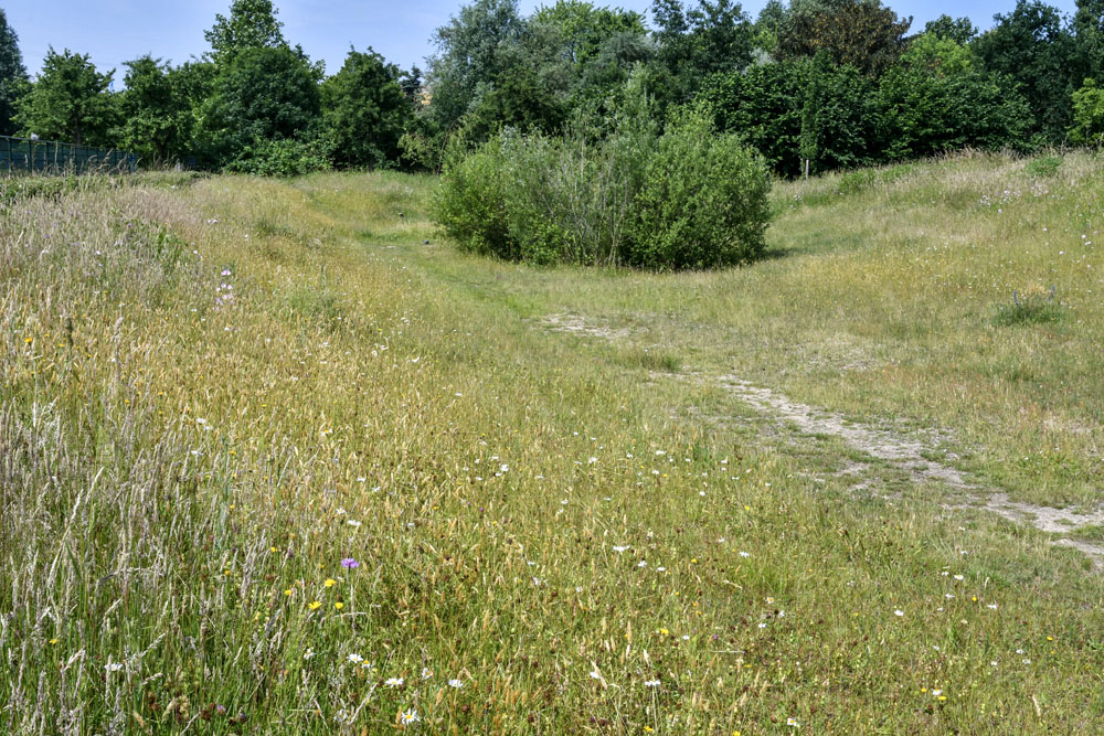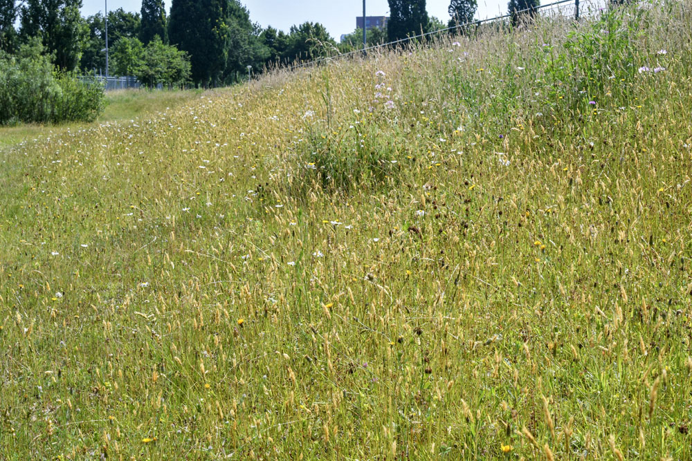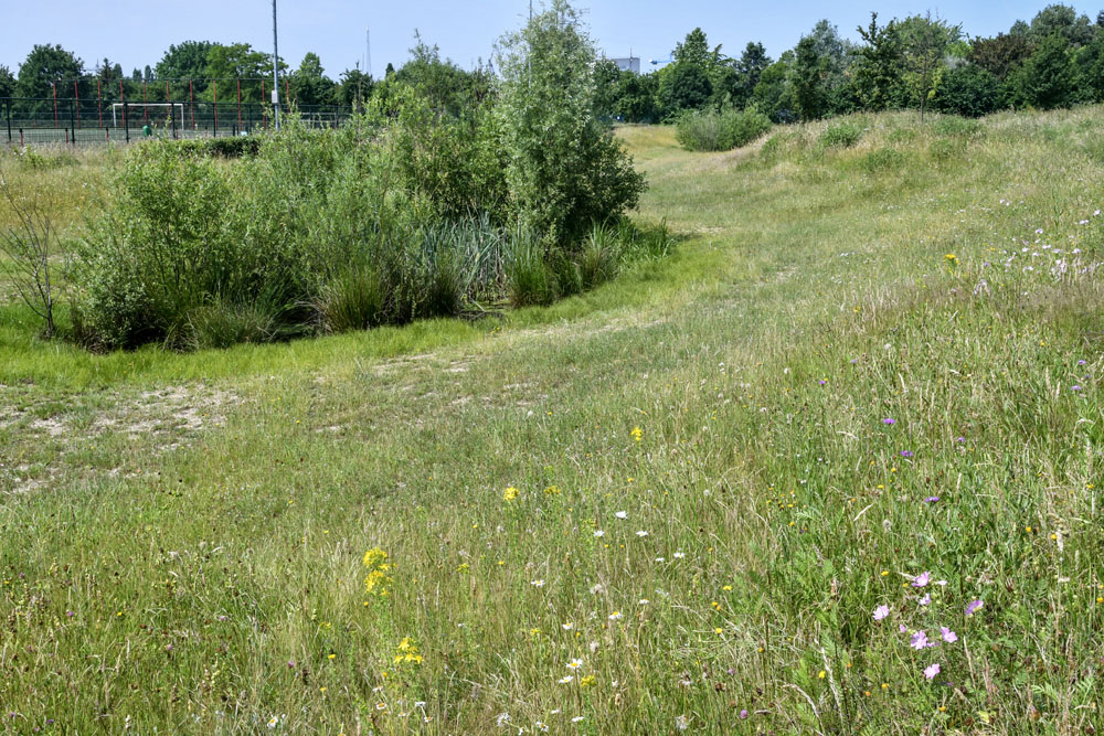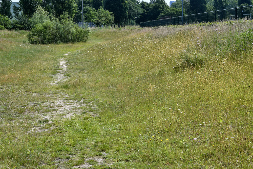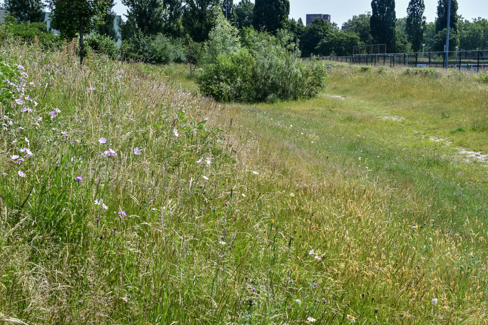 48 Zone F: polengebied: hoekje met soortenrijk grasland langs hekwerk langs sportvelden