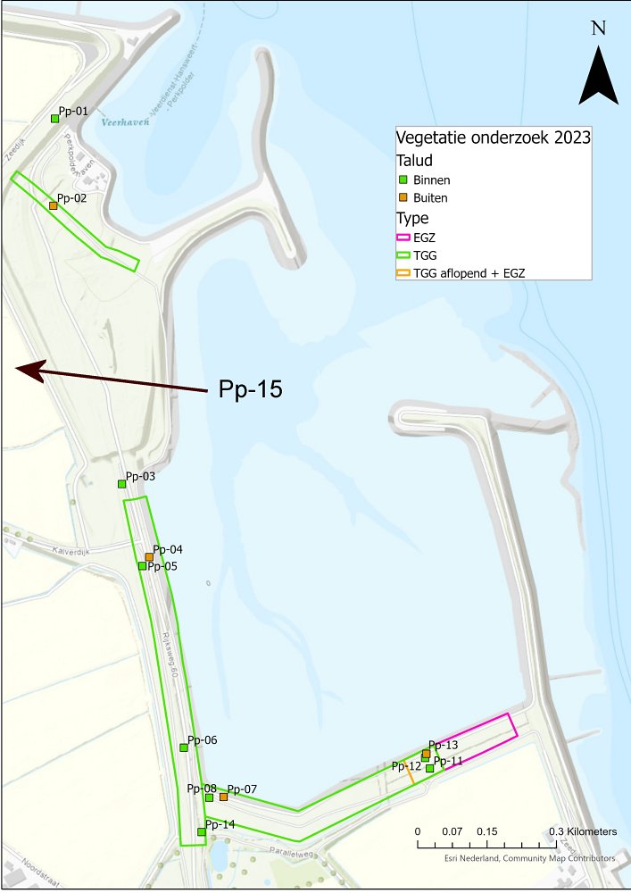 4 Kaart 4: ligging van de 13 locaties waarop vanaf 2020 vegetatieopnamen zijn gemaakt. Nieuw in 2024: locatie 15