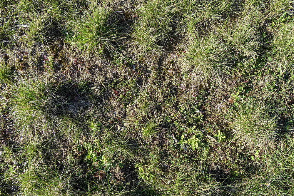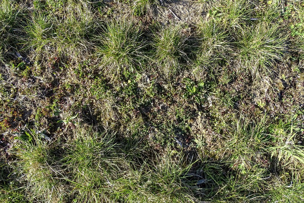3 Op een deel van het talud zijn er wat open plekken, waarschijnlijk ontstaan bij het rijden over het talud tijdens het maaien