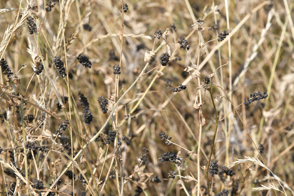 9 De vele klaversoorten hebben uitbundig gebloeid en veel zaden geproduceerd, zoals deze Hopklaver