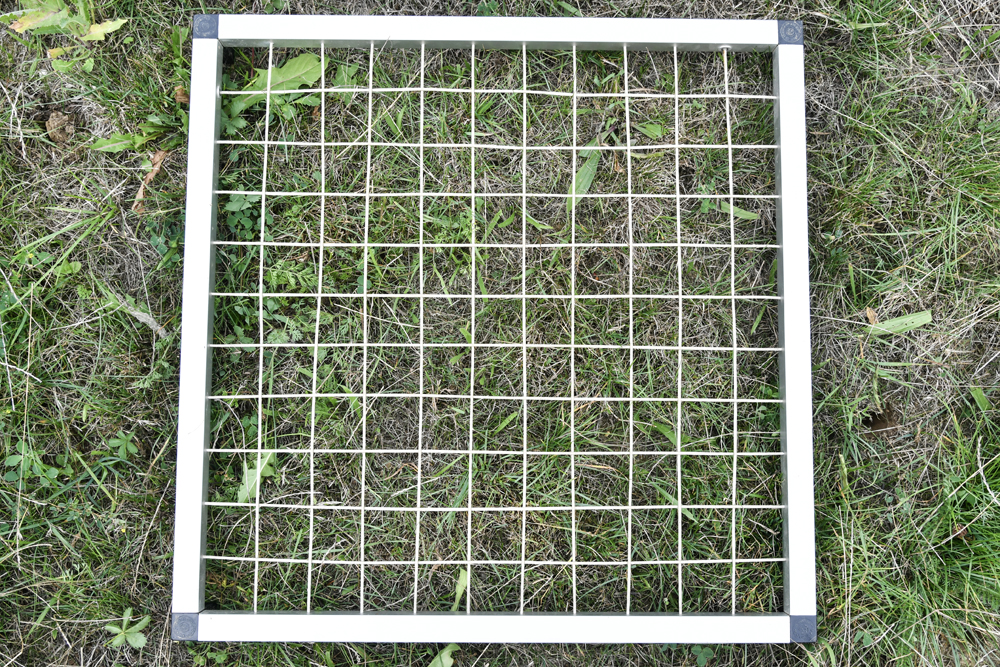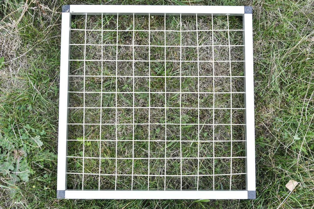 13 Meten van de bedekking in een van de proefvakken in de pilot met behulp van een raster met kruisende draden