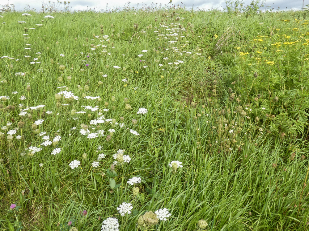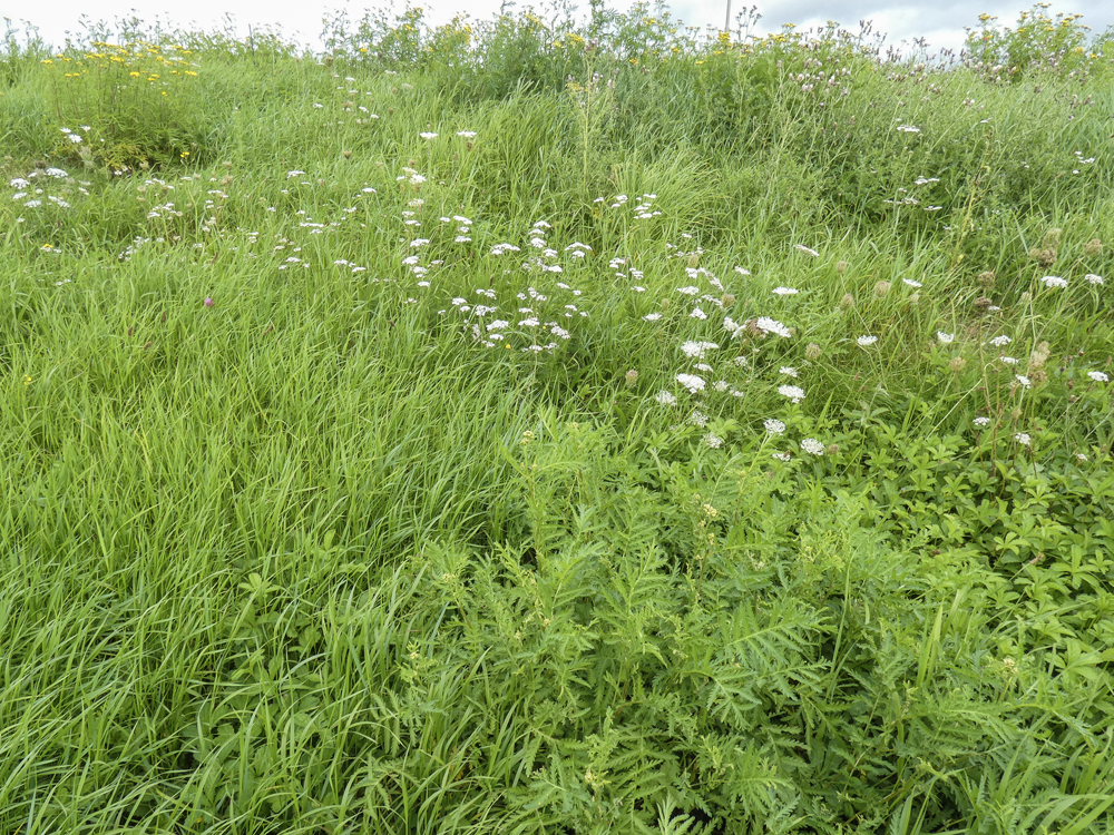 De dijk is vroeg (begin juni) gemaaid en de vegetatieopnmane zijn gemaakt na herstel van de vegetatie