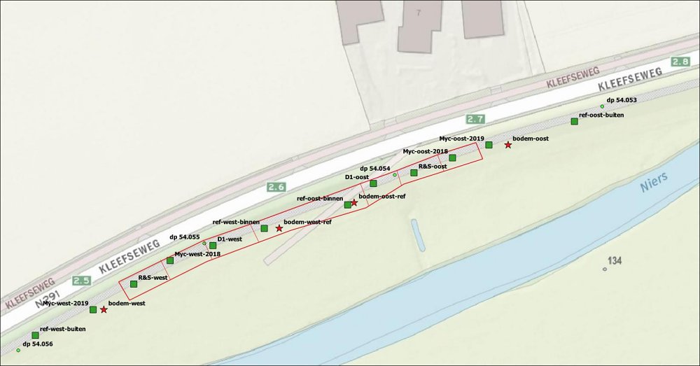 3 Ligging van de 12 proefvakken van het vegetatieonderzoek
