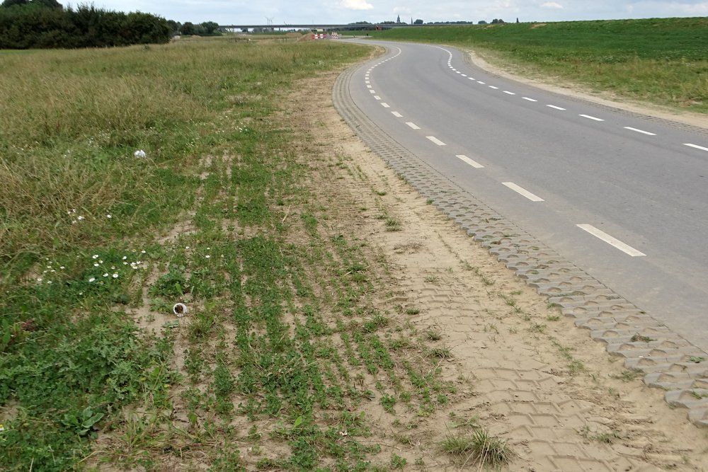 26 De berm ligt soms aanzienlijk lager dan de strook met grasdoorgroeisten direct langs de weg