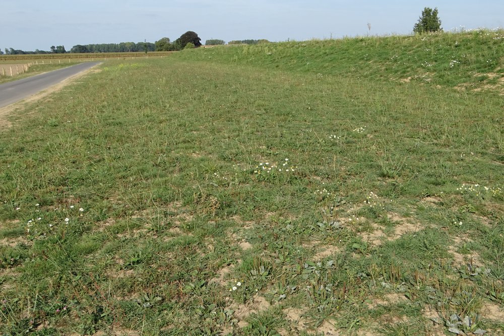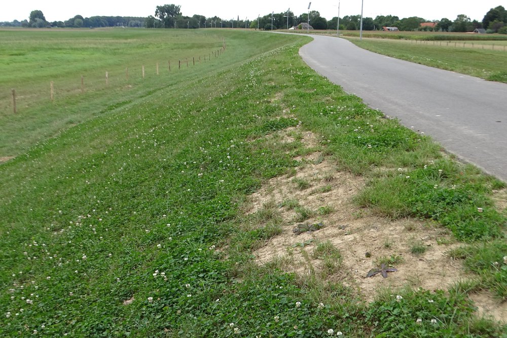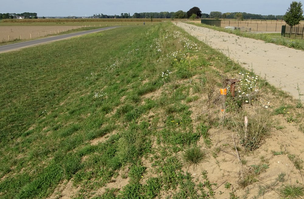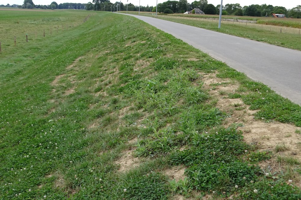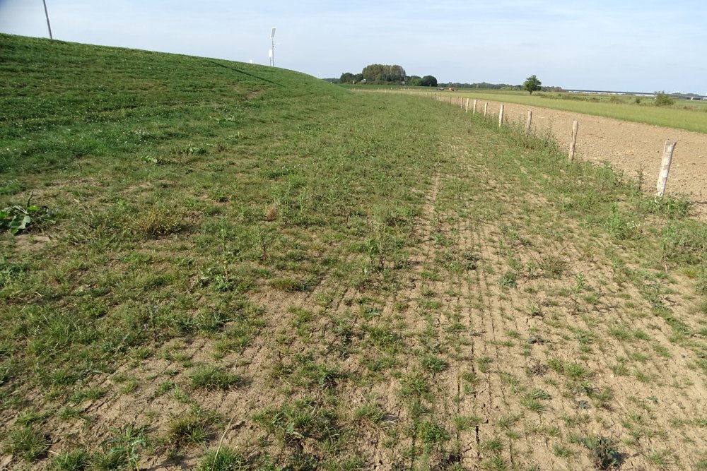 13 De bermen van de onderlangsweg aan de binnenzijde van de nieuw dijk zijn plaatselijk niet of nauwelijks begroeid