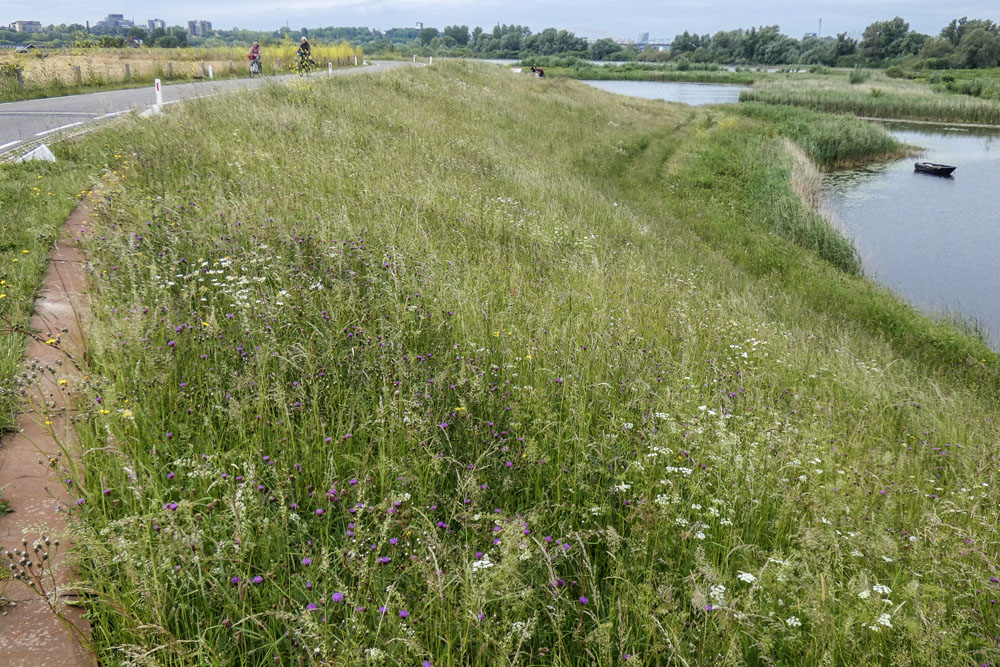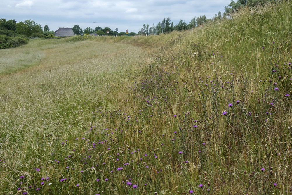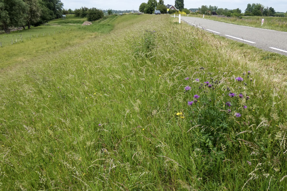 Tot en met 2019 werd het buitentalud elk jaar vroeg in mei gemaaid met als doel de piek is de grassengroei in het vroege voorjaar te verwijderen waardoor de kruiden