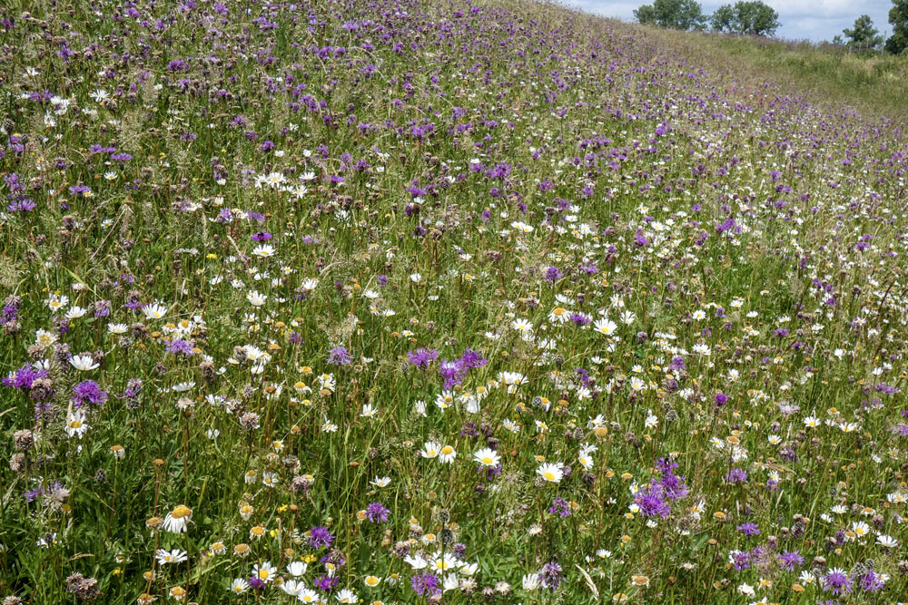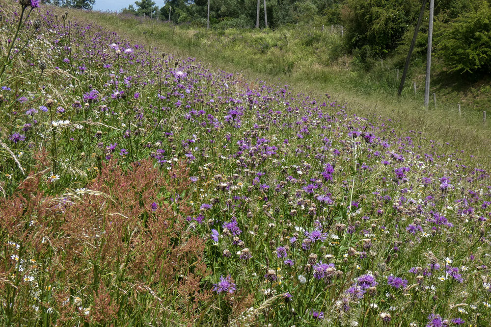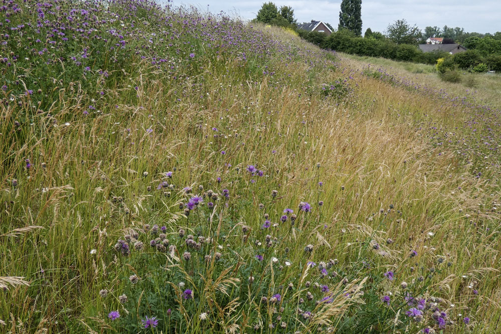 Daarom besloot Staatsbosbeheer om in 2020 het gehele talud pas te maaien na de bloei van de meeste gras-